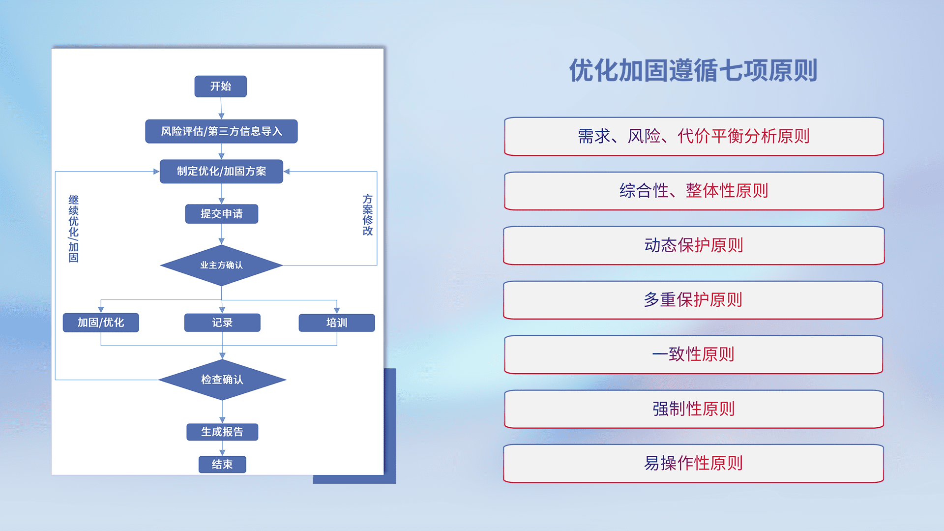 最大程度利用现有资产,,,,对评估发现的问题进行封堵与整改,,,,防止漏洞被利用,,提升整体网络安全性,,为客户带来高标准的优化加固服务。。